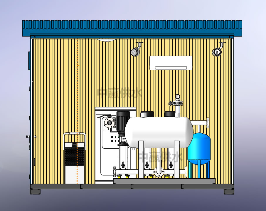 中贏供水針對(duì)傳統(tǒng)二次供水泵房用地需求大,安裝費(fèi)時(shí),需長(zhǎng)時(shí)間斷水等問(wèn)題,推出具有環(huán)保、低噪、恒溫、抗震、防風(fēng)、耐腐蝕等特性,并將傳統(tǒng)泵房與現(xiàn)代大數(shù)據(jù)智慧互聯(lián)巧妙融合、實(shí)現(xiàn)模塊化定制、精細(xì)化生產(chǎn)、標(biāo)準(zhǔn)化安裝的室外一體化智慧泵房。