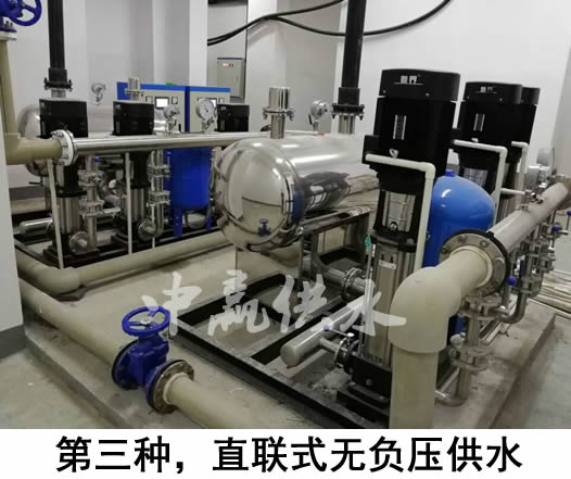3、如果地下室沒有儲水池或不銹鋼水箱,而是直接通過中贏無負(fù)壓供水設(shè)備疊加市政管網(wǎng)已有壓力進(jìn)行加壓的,由于它是與自來水管道是串聯(lián)的,密封性非常好,所以不會產(chǎn)生二次污染,大家可以放心使用(自來水--無負(fù)壓設(shè)備--用戶)。第三種供水方式
